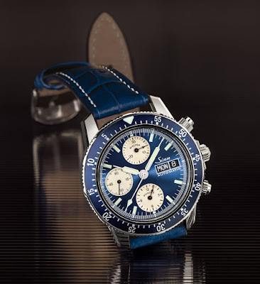 Das "A Sa B" -Suffix im Modellnamen steht für " Automatik Saphir Blau ", was als "Automatic Sapphire Blue" übersetzt und viele seiner Features erklärt. Abgerundet mit einem Sonnendurchbruch, der mit einem metallischen Blau bestückt ist, hat das Zifferblatt Silberzähler, ein Blick, der an den abgesetzten 203 Arktis Chronographen erinnert, der für arktische Forscher entworfen wurde. Es ist der zweite Sinn, der dieses Jahr mit einem blauen Zifferblatt eingeführt wurde, nach den T1 und T2 B Tauchuhren .